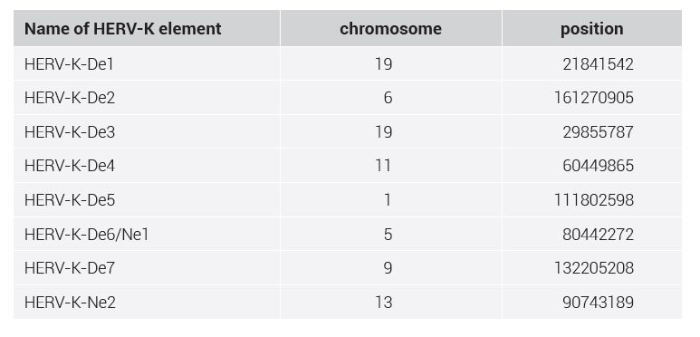 - Contreras-Galindo, R., Kaplan, M.H., He, S. et al., HIV infection reveals widespread expansion of novel centromeric human endogenous retroviruses, Genome Res. 23(9):1505–1513, 2013 | doi: 10.1101/gr.144303.112. Return to text.